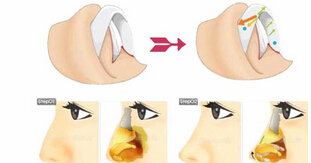 2、 鼻孔外进路:鼻孔外进路全鼻整形术,此法先在鼻中柱的中1/3与下1/3的交界处及鼻翼软骨的内侧脚和外侧脚的前缘做一鼻孔边缘切口,通过皮肤切口,将外鼻的皮肤向上掀起,直至鼻骨的下缘,切开骨膜并通过骨膜切口将鼻骨的与其表面的骨膜、肌肉和皮肤分离,进而在直视下完成鼻背驼峰截除、鼻背缩窄和鼻背下部的改造。鼻孔外进路法适合于我国大多数人的鼻整形。无论哪种鼻整形方法,在手术结束后应做鼻腔内填塞、鼻外部夹板固定。