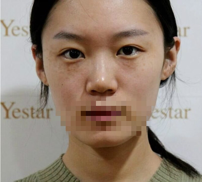 术前分析:眼周太阳穴等部位褐青色痣、雀斑严重,面部其它部位零星分布雀斑。
