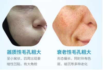 随着年龄的增长,毛孔周围的皮肤开始松弛,角质层缺水,含量减少,真皮层弹力下降失去支撑毛囊的力量,使毛孔在视觉上变大。