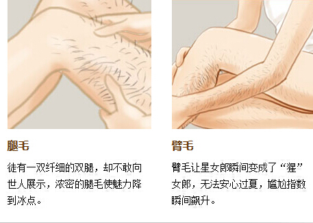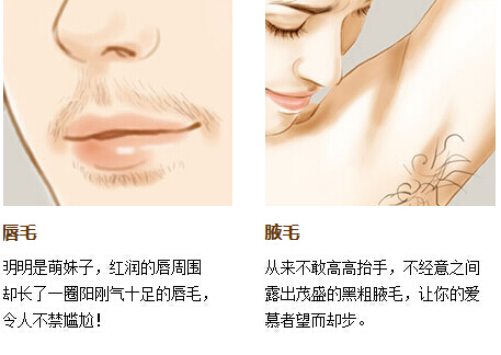 发际线、面颊、胡须、唇毛、腋毛、手臂、背部、腹部、比基尼线、腿毛、脚毛.....
