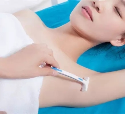 首先,会使用快速性刮毛器将腋下的毛发刮除,就跟平常自己刮毛一样,主要是将脱毛部位进行清洁处理。