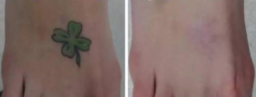 专业性的纹身,由于含有金属Fe等染料在里面,对于普通激光来说,绿色、黄色、红色纹身较难祛除。皮秒激光祛除颜色范围广,黑色、咖啡色、紫色、蓝色、绿色等它就可以有效可以祛除的。