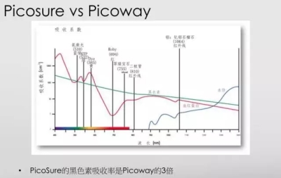 对比波长1064 nm的传统激光,皮秒激光对黑色素的吸收峰值是传统的3倍,能够快速代谢、避免反黑、迅速复原~