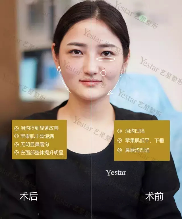 乔雅登填充泪沟、鼻唇沟,后2周对比效果。