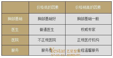 通过上述表格我们可以知道,假体隆胸的价格受很多因素影响,需要专业正规的美学设计为您量身定制出隆胸方案以后,才能确定出隆胸的具体价格。