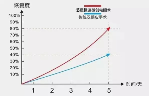 保留上眼睑血管网与结缔组织,养分与营养物质有效送达,有效减少肿胀、青紫,恢复时间较相同效果的综合美眼术式缩短;