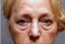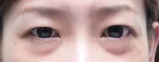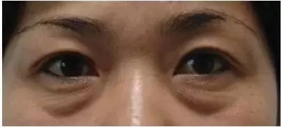 单纯性下睑及外眦皮肤松弛,但无眶膈松弛,所以无眶隔脂肪突出,眼周伴有细小皱纹出现。