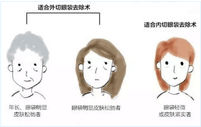 ◆ 外切口适应人群:下眼睑脂肪膨出较明显、眼周皱纹较多、下眼睑皮肤松弛者。
