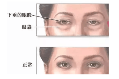 ◆ 眼袋明显,眼部皮肤松弛,眼底脂肪隆起;