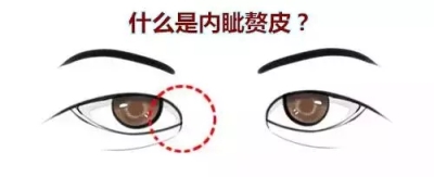 "内眦赘皮"是指在内眦角前方的一片垂直的皮肤皱襞,它遮掩着内眦角,使内眦角角度较没有内眦赘皮的人为小,它还遮挡部分视野,使有双重脸的人只能形成"半双",而影响眼的美观.