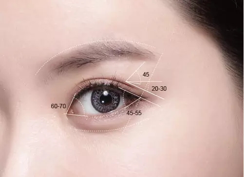 开眼角和双眼皮手术一起做能把眼睛的形状和比例调整到好.从美学上来说,眼部黄金比例为眼裂30mm,内眦间距为32-36mm,外眦间距为85mm,内外眦连线与水平线夹角以10°,外眦角为60°,内眦角为48°~55°时较美.