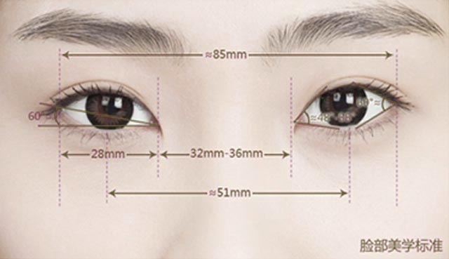 首先内眼角约48°,外眼角约60°,才可让黑瞳比例提升,数据化的脸部美学设计,精细眼部修复技术。