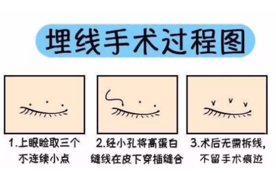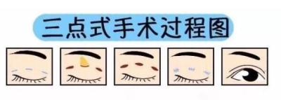 现在市面上很流行的韩式三点,就是在眼皮上设计三个长度仅1毫米的不连续的微小伤口。因为不去除皮肤,术后恢复期相对更短。